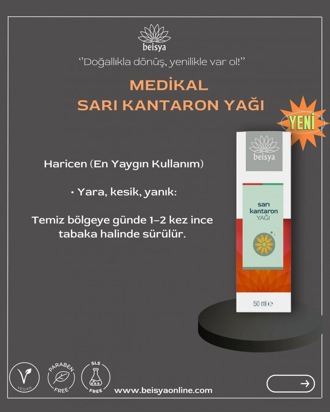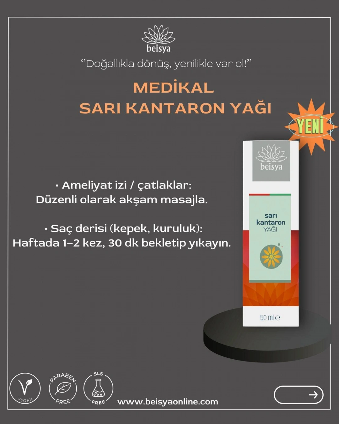 Medikal sarı kantaron yağı, ciltte oluşan tahriş, kızarıklık ve hassasiyetin yatıştırılmasına yardımcı olur. Onarıcı ve destekleyici yapısı sayesinde cilt bariyerini güçlendirmeye katkı sağlar ve cildin doğal yenilenme sürecini destekler.